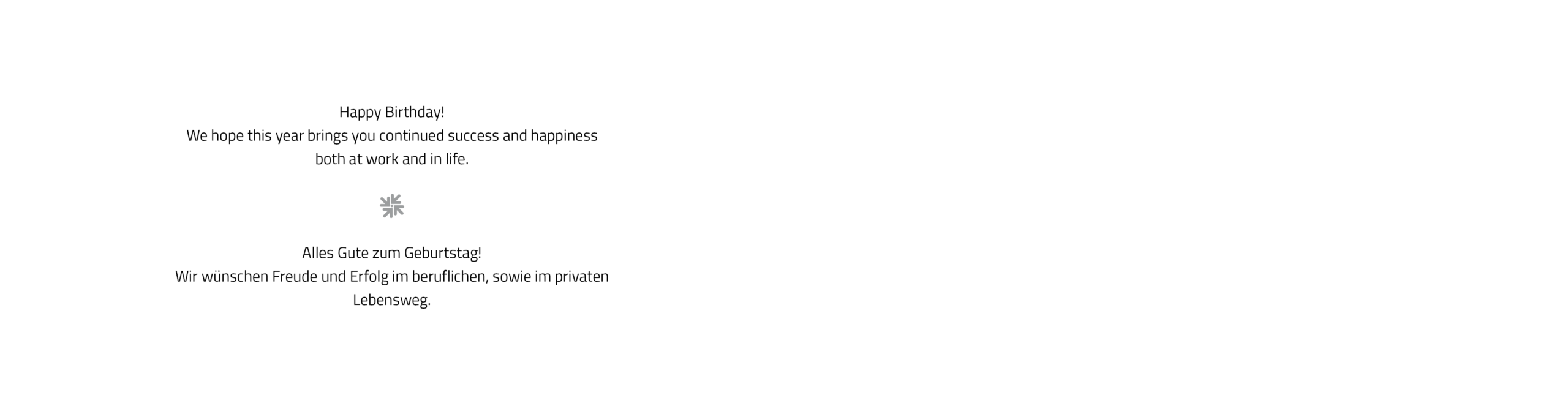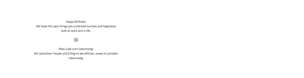 Die Geburtstagskarte ist innen nur auf einer Seite bedruckt. Auf der rechten Seite werden üblicherweise handschriftlich persönliche Glückwünsche festgehalten. Natürlich kann diese Seite auch im Nachhinein personalisiert bedruckt werden, wenn gewünscht.