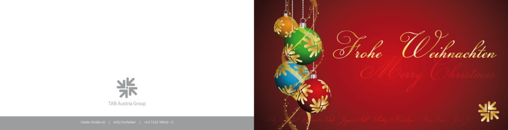 Die Weihnachtskarte gibt es in zwei Varianten – CMYK und CMYK mit Heißfolienprägung der goldenen Elemente.